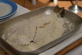 Colocar o peixe sobre uma cama de sal e cobrir bem o peixe.